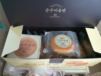 부담없는 선물용으로 인기만점인 순수마들렌 세트[20개입] 우유 듬뿍! 부드러운 마들렌 제품입니다. 남녀노소 누구나 좋아하는 제품으로 선물용으로 추천합니다.