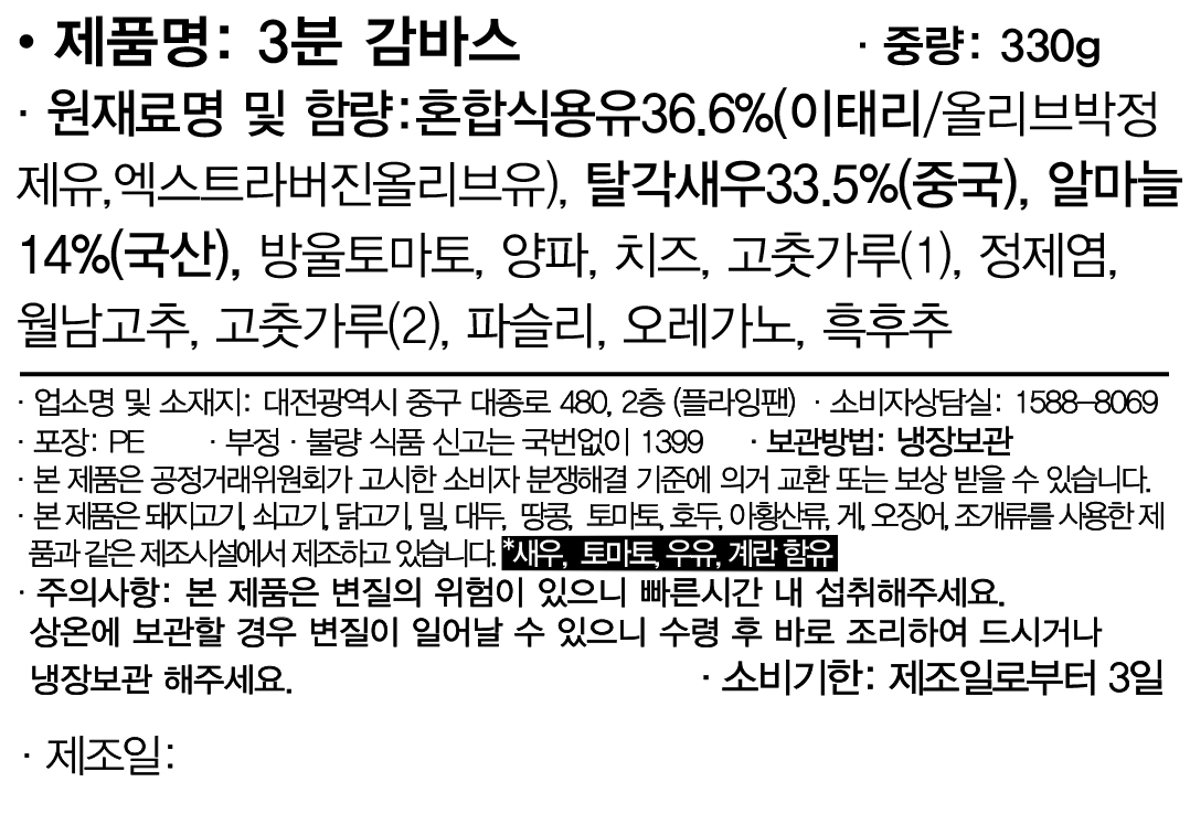 끊을 수 없는 매력, 탱글새우가 12마리나 들어가는 3분이면 누구나 스페인 갬성 충만. 성심당 플레인 빵들과 잘 어울려요!